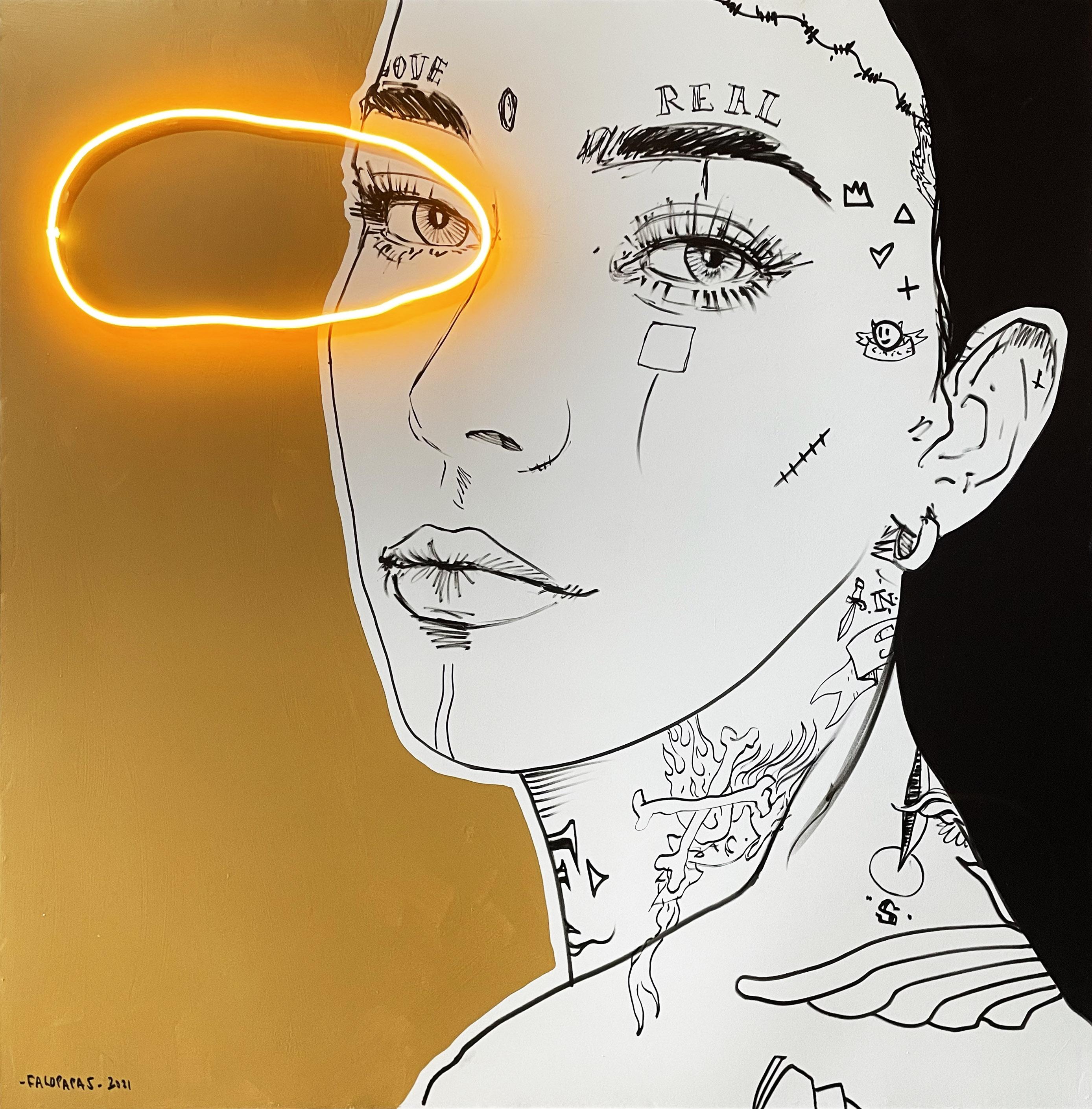 Acrylic on wood panel with neon led